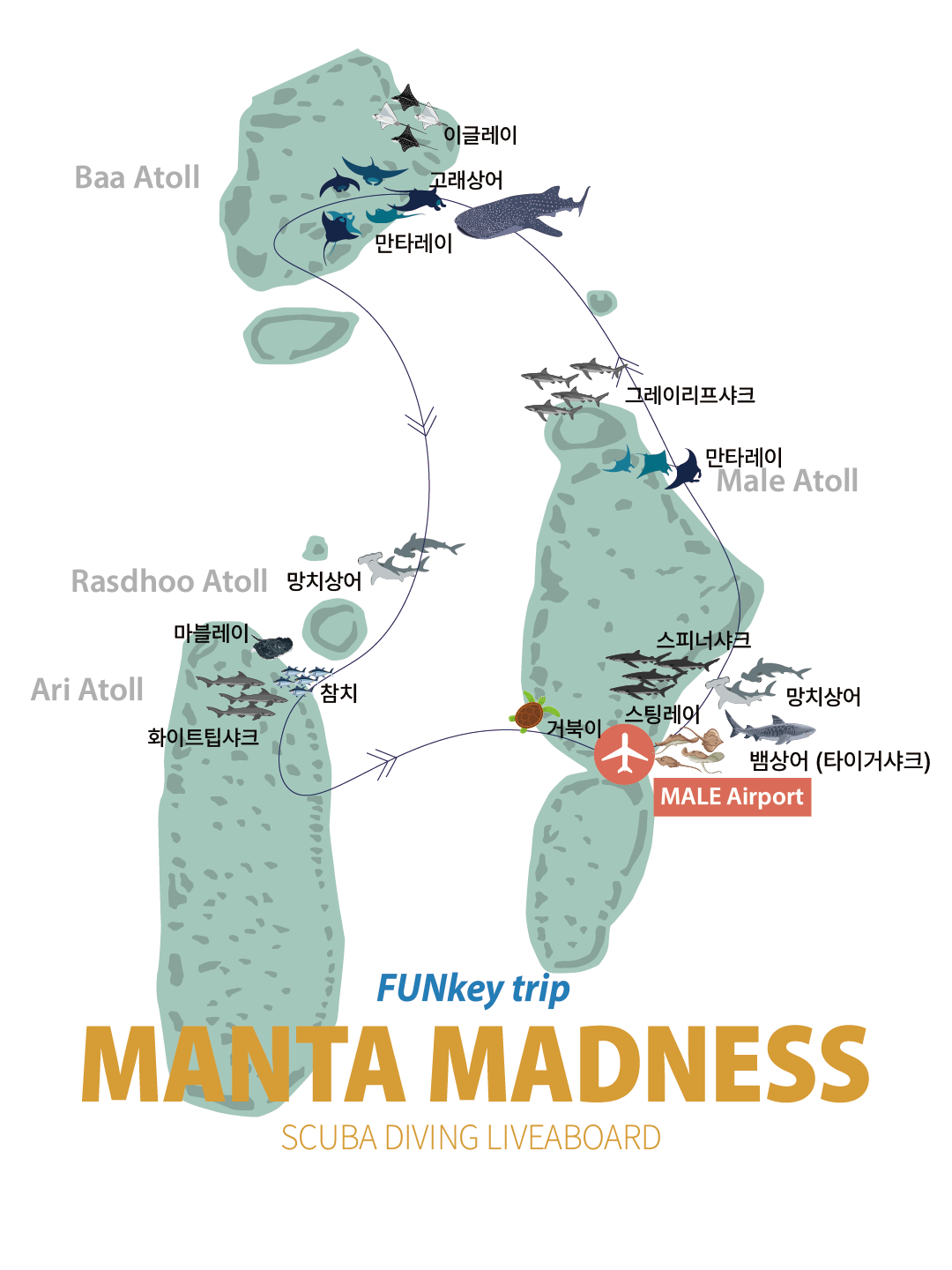 몰디브 리브어보드는 루트가 크게 세가지로 나뉩니다.