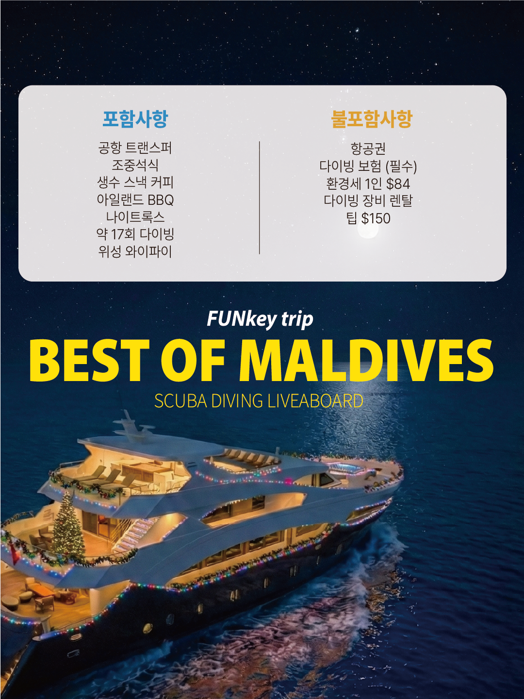 인솔자는 탑승하지 않지만, 공항 픽업부터 보트 승/하선까지 펀키트립이 완벽하게 준비해 드립니다. 현지 크루들이 친절하게 안내해 드립니다.