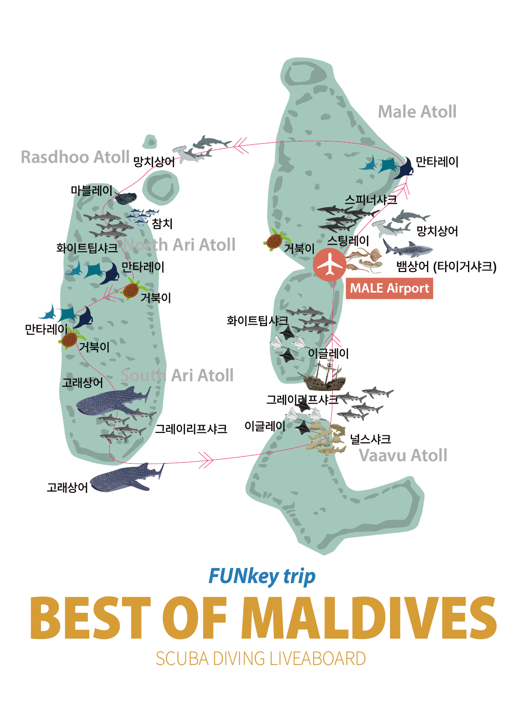 ※ 말레 - 바아브 - 사우스 아리 - 노스 아리 - 라스두 아톨을 잇는 황금 코스